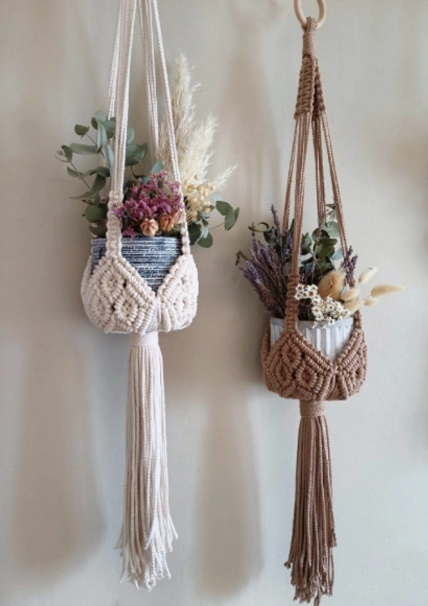 【HANDMADE IN INDIA】Handmade by talented Indian artisans, our macrame plant hangers are made of 100% natural cotton rope, meticulously handcrafted, eco-friendly, no smell, sturdy and not easily deformed or damaged. Great way to show your lovely plants, also a unique boho wall hanging decor
