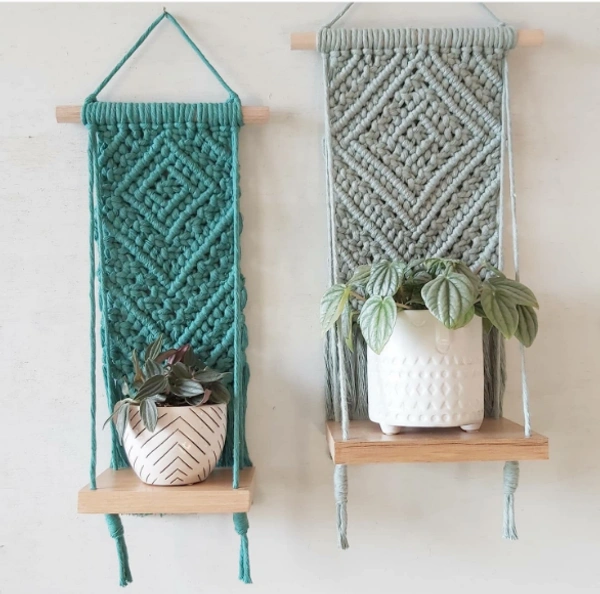 This macrame wall hanging shelf is ready to hang by your bay window, curtain rod, corner of your room, patio door or on your porch